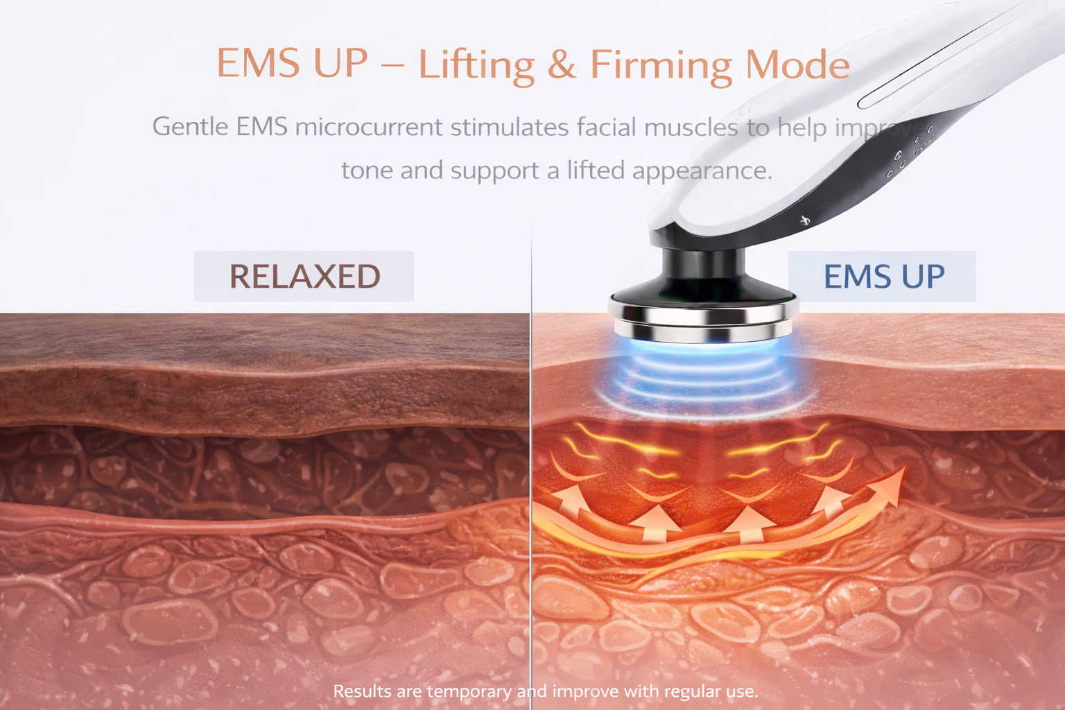 EMS UP – EMS microcurrent gently stimulates facial muscles to help improve tone and support a lifted appearance.
