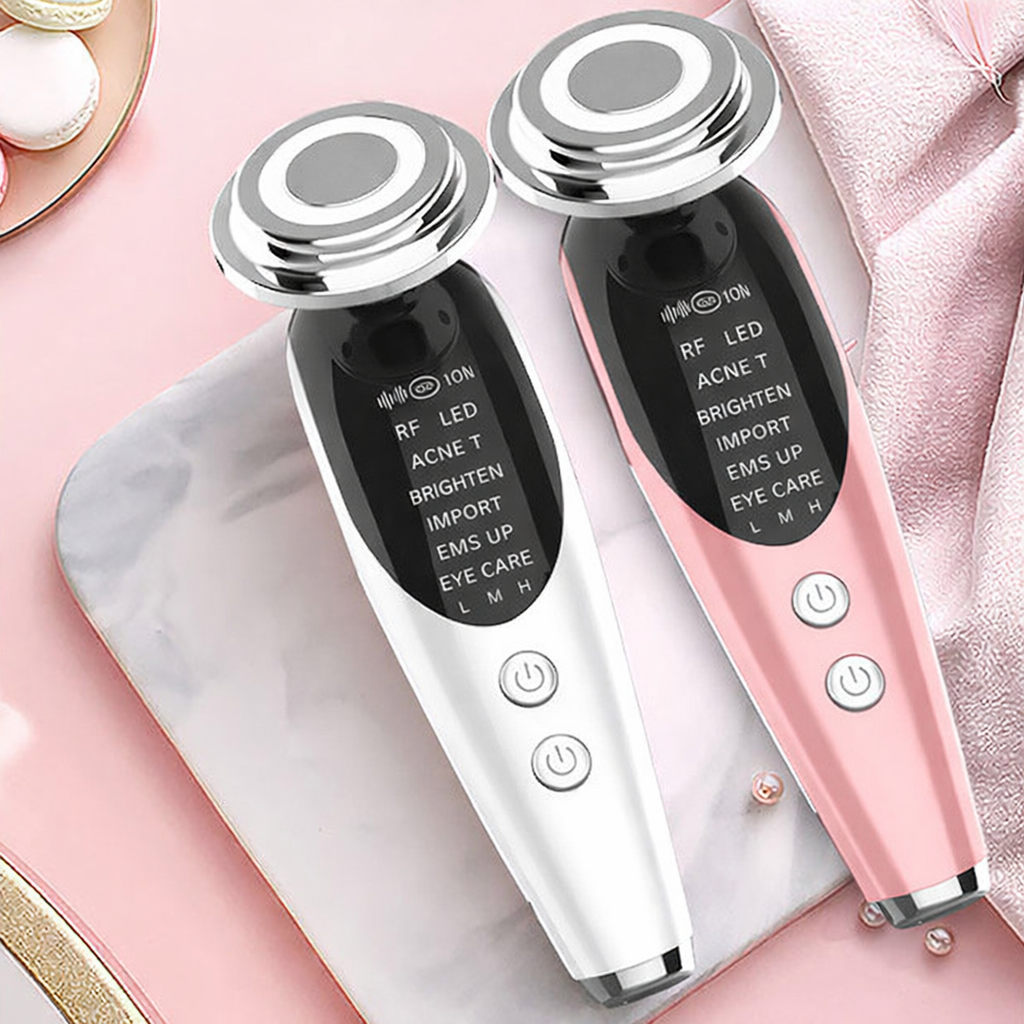 The Ionic Skin Infusion Device is a multi-functional at-home facial tool designed to support clearer, firmer, and healthier-looking skin using a combination of ionic technology, LED light therapy, radio frequency warmth, and EMS microcurrent.